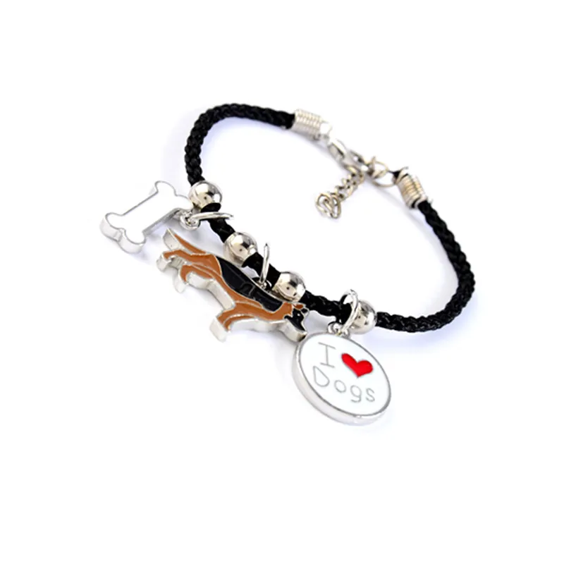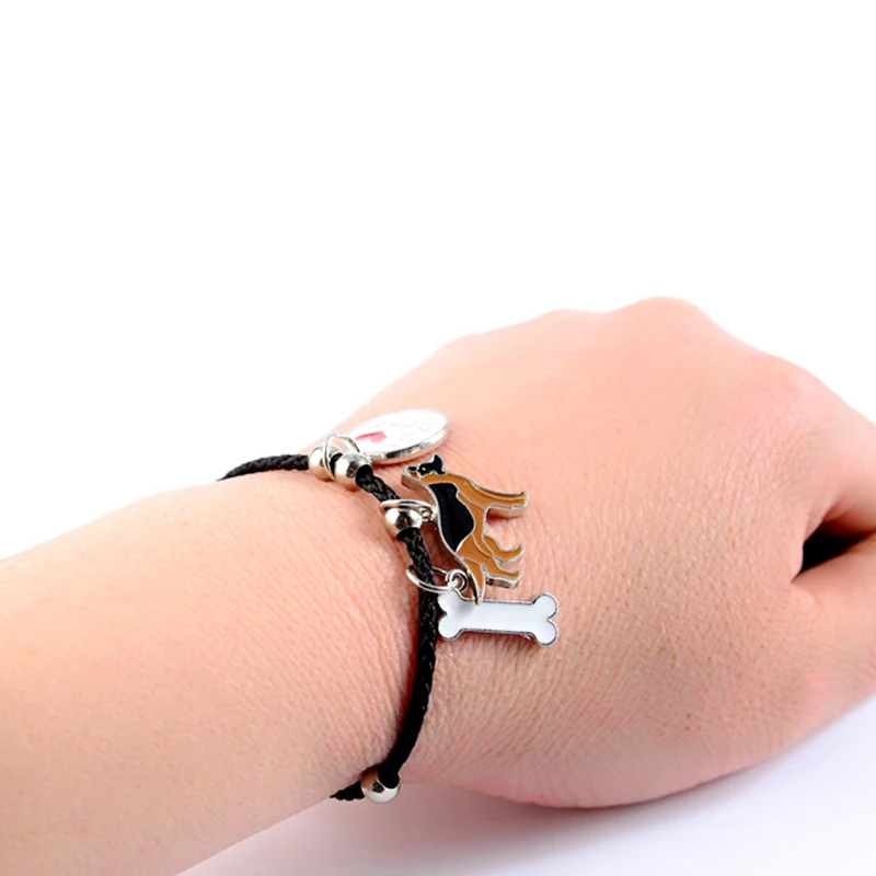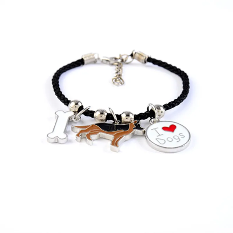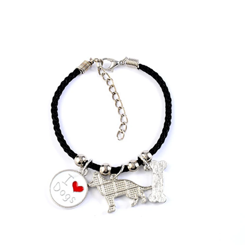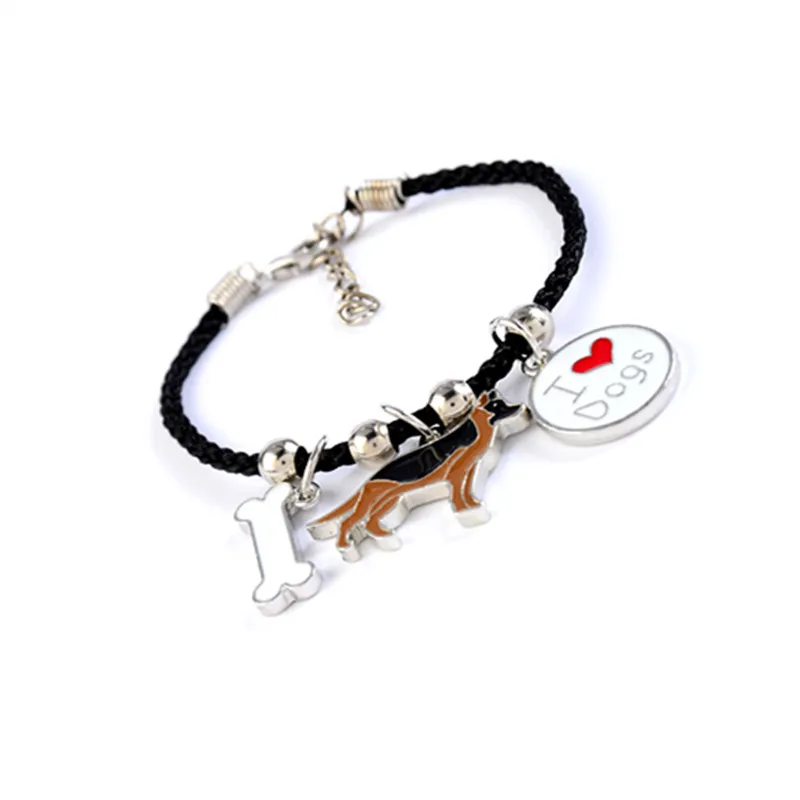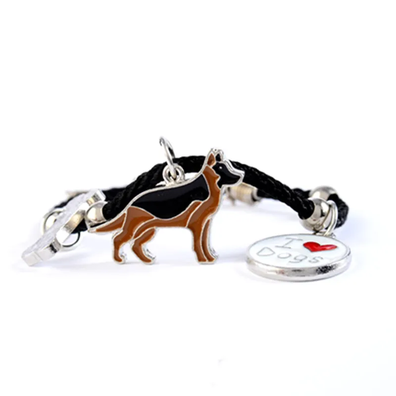 German Shepherd dog charm bracelets for men women girls rope chain silver color alloy pendant male female bracelet friends gift